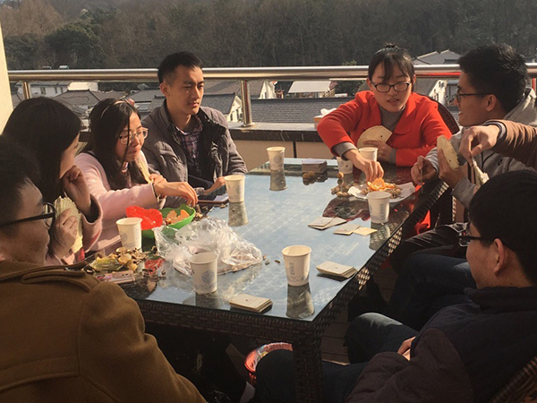 接下来是第二个环节-益智团建竞赛。由大家的兴趣所分,分别组成了狼人杀桌游小分队、纸牌升级小分队以及国粹麻将比拼小分队。