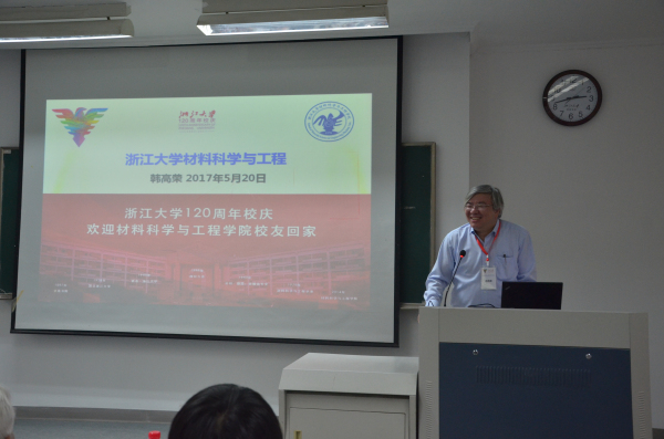 “520”,一句温馨的“我爱你”,韩高荣院长向与会代表们激情洋溢地介绍了材料学院事业的发展情况。忆往昔,峥嵘岁月稠。从起步到发展,从创新到一流,一代代浙大材料人筚路蓝缕,共同抒写了浙江大学材料学院的辉煌历史;念今朝,精材风流续。强大的学院师资队伍、学生规模和科研水平,让浙江大学材料学科在各大权威排行榜的学科排名数据中全球名列前茅,稳步上升;洞未来,志把桥头立。浙江大学材料学院将以高瞻之定位、强魄之担当和引领之科技,与伟大的校友、伟大的师生共建伟大的材料学院。
