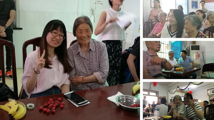 下午14:00,大家准时到达公寓,见到了这些饱经沧桑的老人们。他们想念着自己的子女,却可能远隔天涯或因太多的忙碌而无暇照顾;他们向往着沟通,然而朋友越来越少,圈子越来越小,渐渐的找不到了述说的对象;他们希望能够关注社会,参与社会,然而他们能做的也越来越少。志愿者们与老人们进行了一对一的聊天谈心,聊聊自己的学习与生活,聊聊老人们的生活经验与过往岁月。