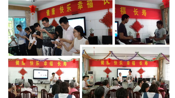 精彩的节目进行了两个多小时,最后大家以一首《难忘今宵》结束了令人难忘的慰问之旅。全体志愿者们与古荡老年公寓的老人们进行了合影留念,大家依依不舍地告别了公寓,返回学校。