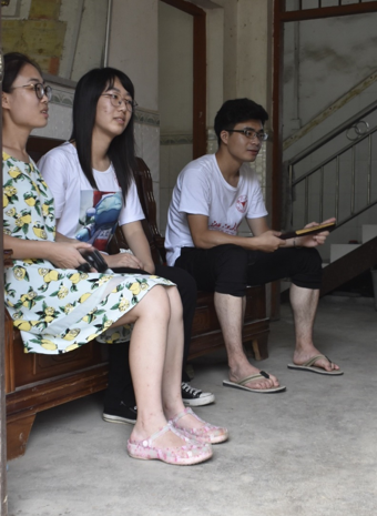 在谈论的过程中,我们了解到小英的父母在她幼时便带着刚出生不久的弟弟到了广东丝绸公司打工补贴家用,由于经济原因以及家里仅有的老人一人在家不便,尚在小学阶段的小英便担当起了照顾奶奶的重任。但即便如此,暑假期间她依旧从不迟到地参加我们每一天的课程内容,并认真做好笔记。我们还了解到,在日常上课期间,小英的成绩也是班级里的佼佼者。