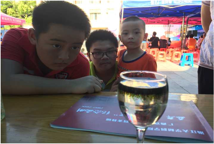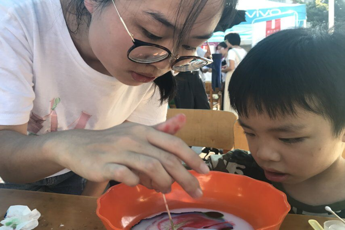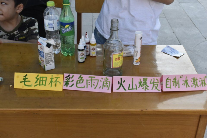 我院团队展示的实验还有:毛细现象实验、火山爆发实验、自制冰激凌实验、彩色牛奶实验、彩色雨滴实验等等。这些也吸引了众多家长们带着他们小孩子来观看,在他们的眼里,我们看到了专注、读出了好奇、感受到了想解释现象的那份渴望。在我们的通俗而细致的讲解之下,家长们带着孩子一起理解了各个实验原理。