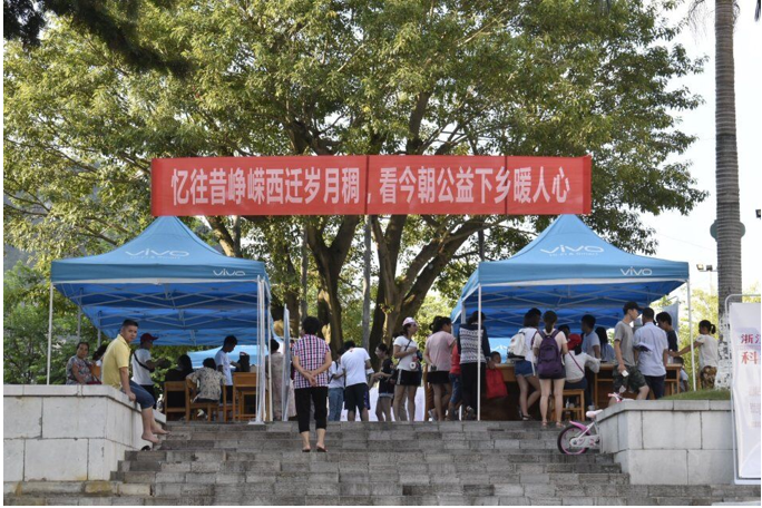 我院团队展示内容丰富多彩,吸引了众多宜州市民的眼球,得到了他们的一直称赞。其中最为火热的当属我院赴广西宜州社会实践支教团的五年“春华秋实”纪念画册,市民们都非常喜欢画册想留作纪念,有的甚至从我们手中夺去画册,最后画册数目只剩四分之一。他们对于这一段历史有着深刻的体悟,也为我们补充了许多那个年代的故事。年轻人们则对于我们作为大学生的支教体悟充满好奇,课程、环境、贡献,五年不间断的支教历程得到了一致的夸赞。