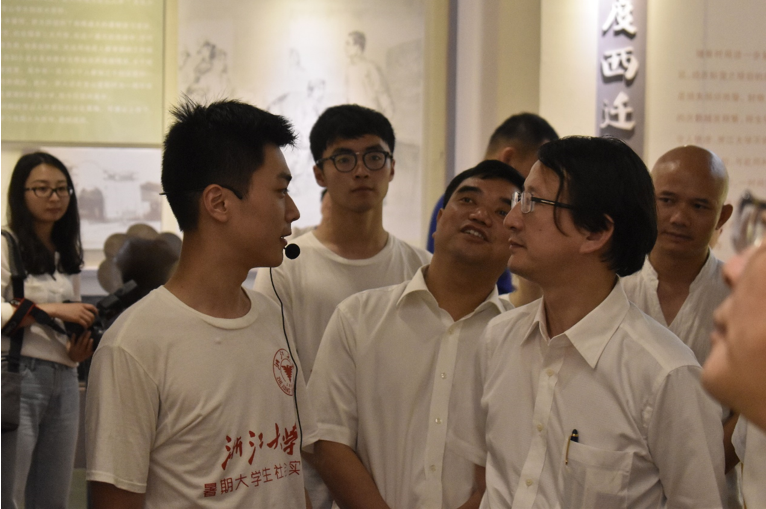 下午五点整,浙大校长吴朝晖、副校长罗建红一行在广西自治区教育厅副厅长黄雄彪、河池市市长唐云舒等领导的陪同下抵达宜州博物馆。在材料学院队员万士齐同学的讲解与引导下,共同参观了宜州博物馆,了解了宜州的悠久历史,回顾了西迁宜州办学史。此外,我院队员万士齐还带领校学生会、云峰学园社会实践团、宜州市市民们参观并解说了宜州博物馆。