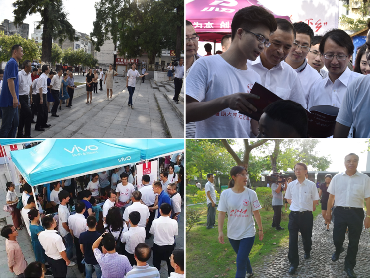2017年8月6日下午四点,在广西宜州市浙大西迁广场,浙江大学赴广西宜州“三下乡”大型公益实践服务第二天的活动如期举行。浙江大学校长吴朝晖、副校长罗建红一行在广西自治区教育厅幅厅长黄雄彪、河池市市长唐云舒等领导的陪同下抵达活动现场,对我院团队以及其他社会实践团队和宜州市民表达了亲切的问候。