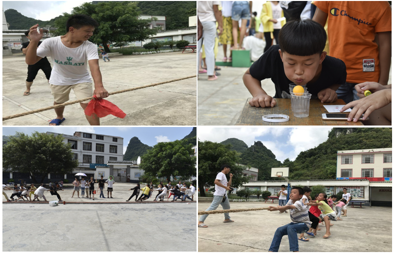 四个单体项目的活动大约在10点半左右就结束了,接下来,就是所有人都摩拳擦掌的拔河比赛了。拔河比赛共三场:一二年级,三四年级,五六年级。还有老师也加入了这场拔河比赛,和孩子们一起努力。在运动会结束后,调皮的孩子们给老师们的手臂上印满了印章,让老师们也是哭笑不得。