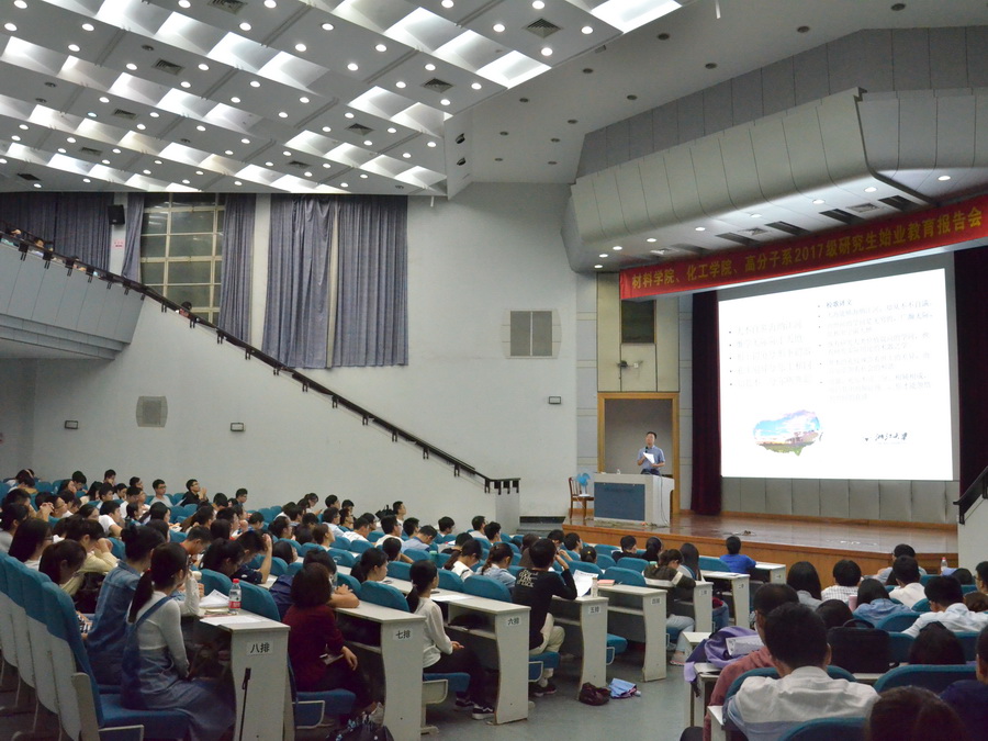 9月21日晚,来自材料、化工以及高分子三个学院的2017级研究生新生齐聚教七影视厅,迎接他们新学期的第一场始业教育报告会。