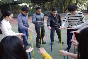 游戏看起来规则都很简单,但实际练习起来还是困难重重。如同心鼓,要求团队成员心往一处想,力忘一处使;黄球进洞,对于每个人的反应速度都有要求;数字跳舞机,则考验大家灵活的身手;木头森林,需要大家的默契度与执行力。经过练习,三组开始了第一次挑战,但没有一组的完成时间少于五分钟。第二阶段十五分钟,三组成员都针对自己的薄弱环节加强了练习,再次进行挑战,虽然还是没有达到五分钟的目标,但是每组相对自己,都取得了巨大的进步。