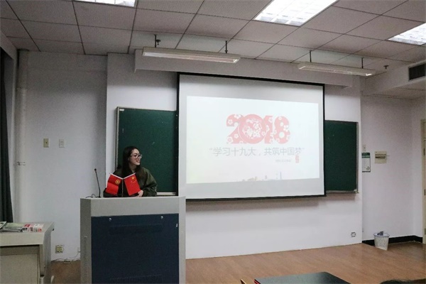 在视频观看结束之后,预备党员李飞雨同学给大家分享了他心中的“十九大”,畅谈自己对青年学生学习十九大精神的理解。飞雨说,我们新时代大学生学习党的十九大精神,不仅要在传统形式上努力,更要付诸在我们日常的学习生活与实际行动中,让十九大精神真正贴近到我们的一言一行,这样才能有更深的认识和体会,也更有实际价值和意义。