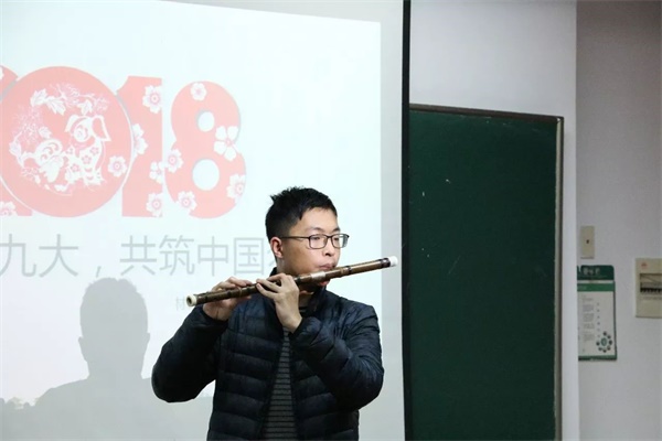 李飞雨同学精彩而深刻的分享结束后,班内其他同学也纷纷登台,通过诗歌朗诵、乐器表演等多种形式,表达自己对十九大精神的理解,抒发了自己对祖国和民族的热爱以及对作为祖国未来主人翁不懈奋斗的决心。