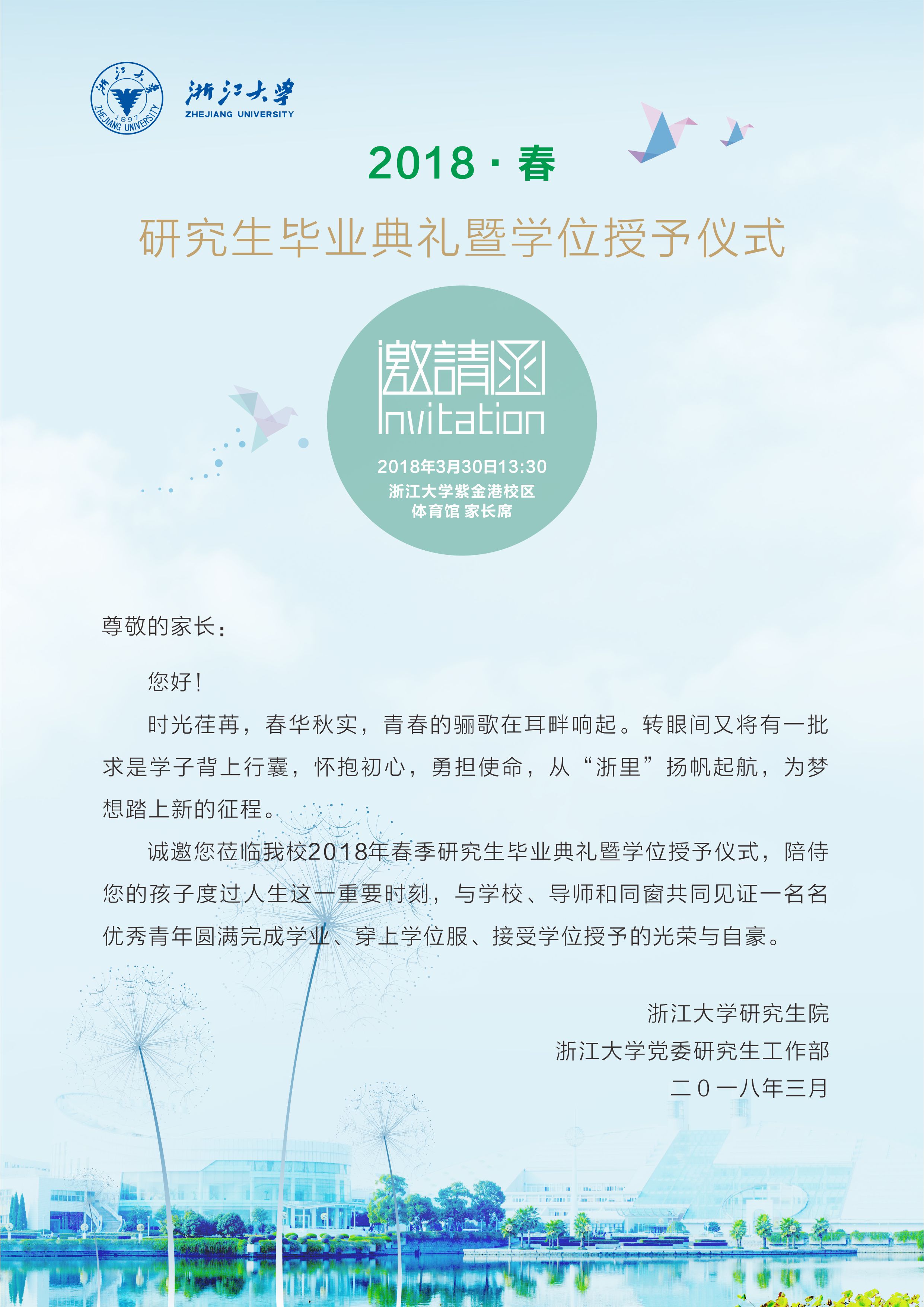 学校定于2018年3月30日13:30举行浙江大学2018年春季研究生毕业典礼暨学位授予仪式。现将有关事项通知如下: