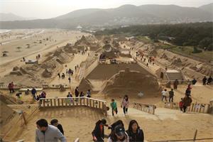 在海岸的旁边是沙雕广场,我们进入沙雕广场,开始比赛一般说出各种粘结剂和粉体的名称和作用,我们体会到了专业知识带给我们的自豪感和快乐。有一座沙雕上面写着,中国梦,我的梦,我们作为新时期的精英大学生,要担起时代的重担,把握时代的脉搏,苍茫大地,我主沉浮!