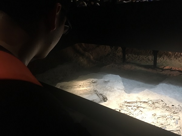 万人坑遗址,阴沉昏暗,白骨堆叠,破碎的尸骸无声地诉说着悲怆的过往。曾经六朝古都,中华瑰宝,在日军的侵占下沦为血腥残酷的人间炼狱。同是中华儿女,休戚与共,相连的血脉带我们回到历史的深处。一条条鲜活的生命在日军的刺刀威逼下走上断头台,倒下,走上,倒下……怀着无限希望的幼童,年轻力壮的汉子,还有白发苍苍的老者,我们的兄弟姐妹,静静地卧在地上,鲜血染红了深爱的大地母亲,映照出侵略者丑陋的嘴脸。