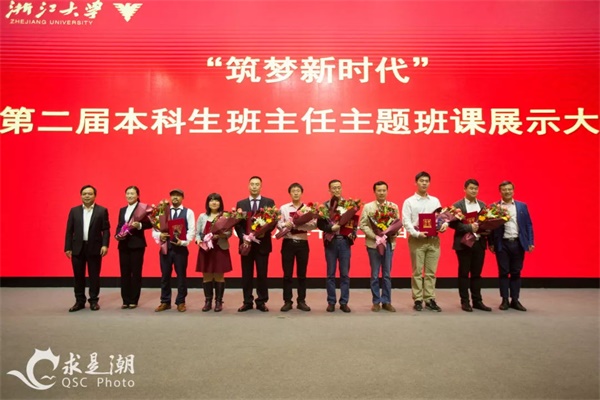 2018年10月24日晚,浙江大学“筑梦新时代”第二届本科生班主任主题班课展示大赛决赛在紫金港校区求是大讲堂举行,我院材料1502班班主任徐刚教授经过预赛的激烈角逐,成功晋级决赛,在决赛中展示了主题为《明德求真,精材成器――做新时代有担当的材料人》的主题班课,以自信沉稳的台风、朴实动人的语言、深入浅出的内容,获得评委和在场师生的一致认可,取得了本次大赛二等奖的优秀成绩!