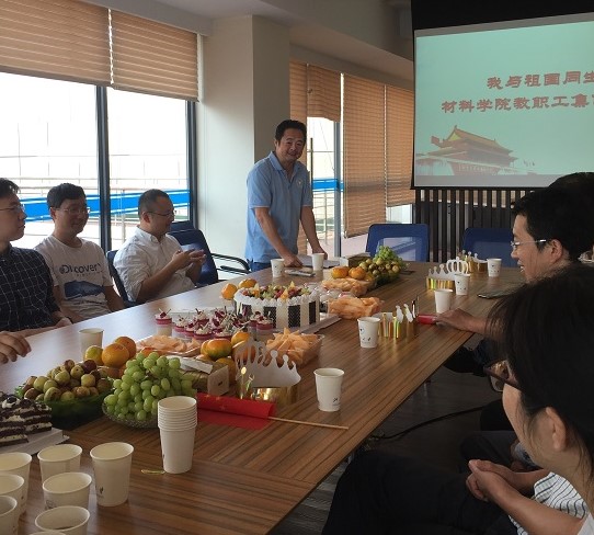 为深入学习贯彻习近平新时代中国特色社会主义思想和党的十九大精神,隆重庆祝中华人民共和国成立70周年,激发全院教职工的爱国热情和工作热情,9月26日,材料学院在学院远望庐咖啡吧举办“我和祖国同生日”暨9-10月集体生日庆祝活动。学院9-10月份生日的寿星、学院领导、工会委员代表近30位教职工参加了此次活动。集体生日会学院工会副主席杨杭生主持。