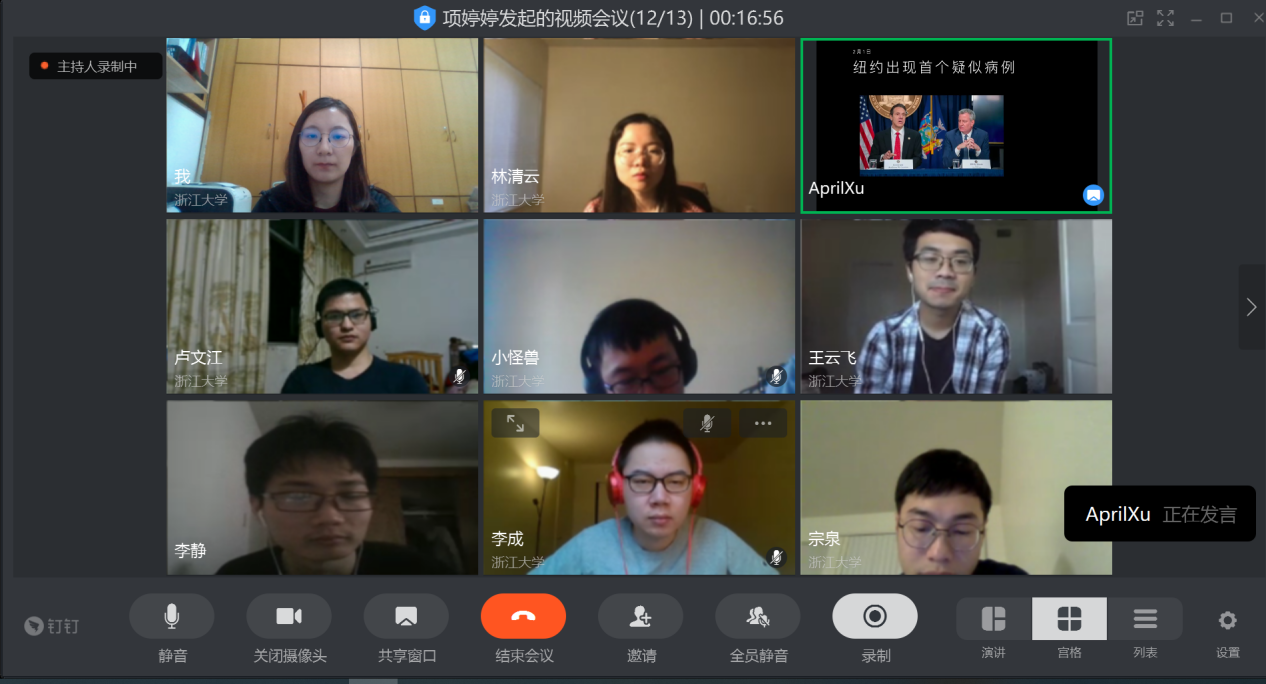 北京时间4月27日晚9点,材料学院海外学子通过视频连线,跨越了中国、美国、法国、丹麦、新加坡多个时区的距离,齐聚线上召开了一次座谈会。学院希望通过这种形式进一步了解疫情期间海外学子的生活与学习近况,从而提供针对性的指导与帮扶。同时希望通过每位同学的分享,加强相互间的交流,借鉴经验,更合理地安排自己的宅家抗疫生活。座谈会持续两个半小时。