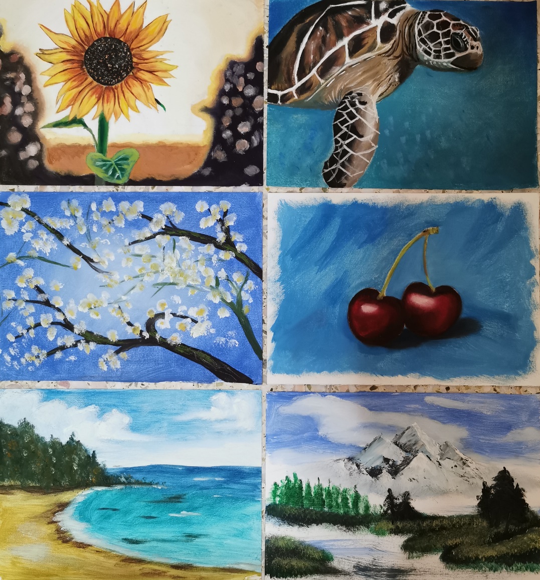 (图为王珊分享的宅家期间聆听科研讲座和油画作品)