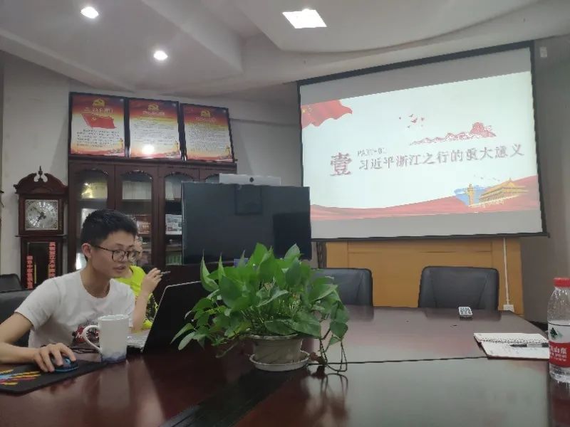 会议内容主要分为三项:1、欢迎邹永金同志参加支部党组织生活会;2、曹文倩同志关于讲解“2020年全国两会热点解读”主题党课;3、刘群获同志关于讲解“干在实处,走在前列,勇立潮头——学习习近平在浙江考察时的重要讲话精神”主题党课。