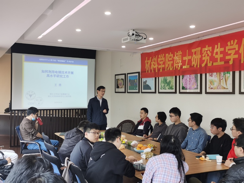 沙龙由学院工会主席吴进明教授主持,首期主讲人是浙江大学电子显微镜中心主任王勇教授,主题是“如何利用电镜技术展开高水平研究工作”,电镜中心团队老师参与座谈,50余位师生参与听讲交流。王勇教授向大家介绍了当下电镜领域的前沿技术,诸如冷冻电镜、环境TEMK2相机等等,让人大开眼界。随后王勇教授结合其最新的SCIENCE成果,借助动态模拟演示,详细讲述了水和氧化钛的奇妙故事。大家听得津津有味,完全被奇妙的微观世界所吸引,同时也启发了对自己研究的深层次思考。王勇教授谈到科研体会时,用决心、信心、细心、恒心、善心、初心等“六心”分享了自己的心路历程,要学会梳理科学问题、尝试极限实验,要善于整合各方资源、勇于直面可能结果,这为一些处于科研迷茫期的学生指明了一条出路。