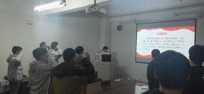 陈群升同志先就支部近期工作进行了汇报,我支部在“对标争先”考核中获得优秀。随后进行薛薇同志的转正大会,支部党员全票通过薛薇同志的转正申请。之后,陈群升同志带领大家重温了入党誓词。