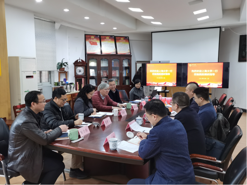 3月12日下午,上海大学材料学院院长董瀚、党委书记王江、院党委副书记祁晶、副院长韦习成、钟云波、黄健、办公室主任王春燕一行7人来访我院调研交流。交流会由浙大材料学院党委书记王晓燕主持,院长韩高荣、副院长陈立新、朱铁军、皮孝东、院党委副书记张士良、办公室主任王育萍出席了座谈会。