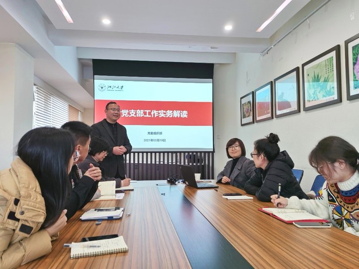 随后,学校党委组织部王芳老师作了题为《党支部工作实务解读》的专题培训。王老师从学校党委对学生支部党建的规划、颁布的相关文件讲起,围绕“指导文件”、“党支部功能定位”、“党支部工作任务”、“党支部工作机制与组织生活”、“党支部委员会建设”、“党支部换届选举”、“发展党员工作”、“党员教育管理”等八个方面展开,结合工作中的实际案例与丰富经验进行了全面细致的解读和辅导,明确了工作开展的规范化要求。