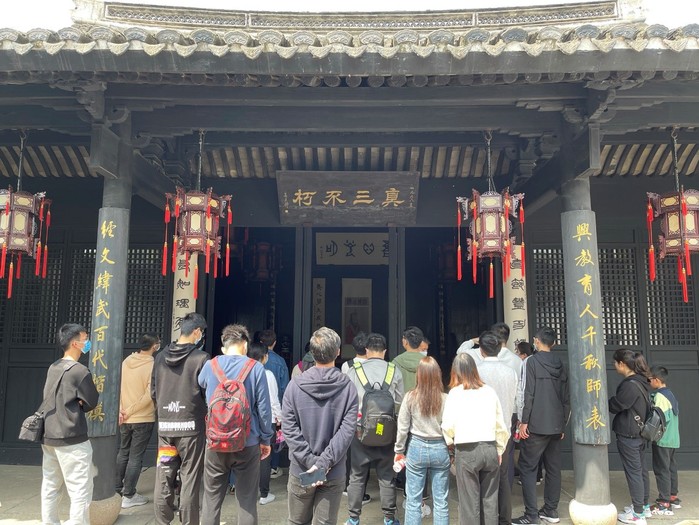 王阳明先生是中国历史上罕见的文武全才,在立德、立功、立言“真三不朽”上取得了丰功伟绩,其心学中的“心即理”“知行合一”“致良知”等理念对后世影响很大。下午,我们来到了余姚的王阳明故居。步入大厅,粗壮的卷棚廊轩高大稳重,素雅的抬梁结构古朴大方,“吾心光明”的提匾和“兴教育人千秋师表,经文纬武百代楷模”的楹联,让大家不由得对王阳明先生油然升起一股崇敬与爱戴之情。