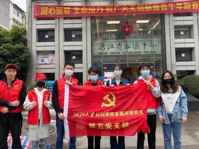 3月31日,为深入学习贯彻党的十九大和十九届二中、三中、四中、五中全会精神,弘扬“奉献、友爱、互助、进步”的志愿精神,推进学雷锋志愿服务制度化常态化,浙江大学材料学院金属所五支部举办了 “三·五”学雷锋志愿服务活动月的相关活动,以青春助力社会治理为活动主题,组织优秀党员,团员前往浙江省血液中心进行志愿献血活动。