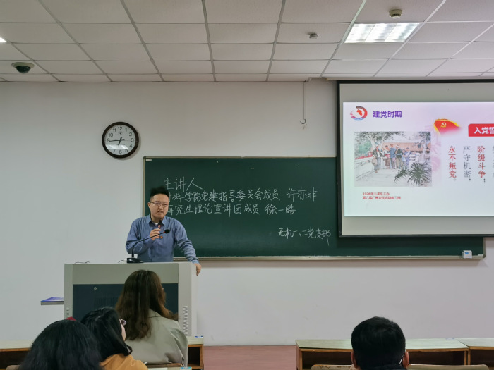 主讲人许亦非同志向大家阐述了入党誓词的历史沿革,回答了“我们为什么要学习、温习入党誓词”的问题,围绕入党誓词的不变一点——“永不叛党”为切入点,对我党的诞生与发展进行了生动的叙述。同志们听得十分投入,对入党誓词有了更加深刻的理解。