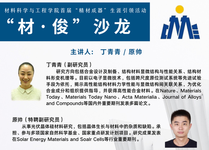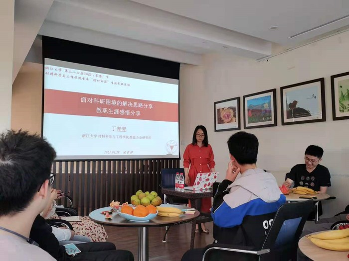 2021年4月28日15时30分,材料学院首届“精材成器”生涯引领活动之“材俊”分享沙龙在玉泉校区曹光彪大楼7楼远望庐成功举办。本次沙龙邀请到了丁青青和原帅两位优秀青年教师,分享他们在浙大的科研和教职生涯中的经验与感悟。分享沙龙由材料学院研博会主席团成员姚悦同学主持。