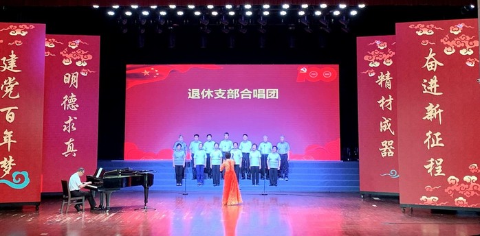 红色歌曲是我们身边的红色资源,传唱红歌是传承红色基因的有效方式。比赛正式开始后,《唱支山歌给党听》《没有共产党就没有新中国》《我和我的祖国》《歌唱祖国》《不忘初心》《让我们荡起双桨》等一首首家喻户晓、传唱不衰的红色歌曲,经各支参赛队伍的精彩演绎,唱响了主旋律、激发了正能量,嘹亮的歌声、铿锵有力的歌词,声声鼓舞人心、催人奋进,抒发了全体师生对党和祖国无限热爱之情,这不仅是一种追忆,更是在传递一种激情、振奋一种精神、凝聚一种力量,让党史学习教育活了起来。第一支出场队伍“复材所初心合唱团”演唱的《唱支山歌给党听》《不忘初心》,以悠扬的旋律和动听的歌声让观众们情不自禁报以热烈掌声。其实,每支参赛队伍都在前期做了充分准备,比赛时的形式变换也令人眼前一亮。退休教工党支部合唱团的老教师们精神矍铄、慷慨激昂,满怀深情地献唱《没有共产党就没有新中国》,引得现场阵阵叫好声。