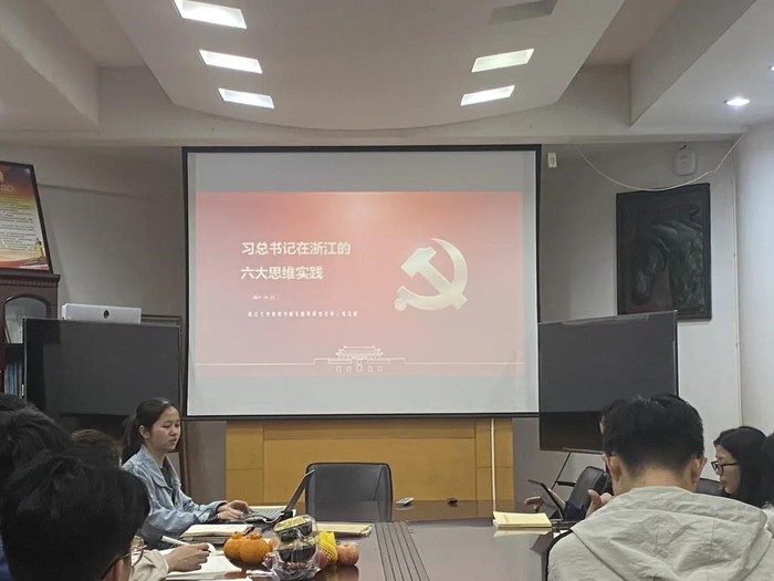 会议第二部分是学习“建党百年浙江专题新闻发布会”的相关内容。本次发布会以“守好’红色命脉’,打造’重要窗口’”为主题,讲述了建党百年以来,浙江省已取得的成就以及对于未来发展的期望。刘群获同志带领到场全体成员围绕“四个关键词”与“六个深刻变化”展开学习,系统地解读了浙江的好故事、好声音,让到场的同志们对浙江的发展有了更全面的认识和更充分的信心。