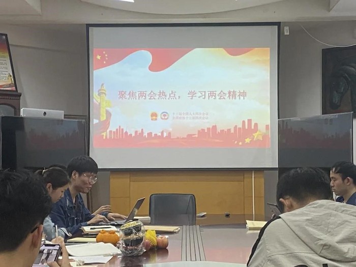 会议第四部分是由王星达同志作主题为“学习全国两会精神”的微党课分享,主要包含以下四个方面:两会基本概述、解读2020年政府工作报告、解读“十四五”规划和2035年远景目标与李克强总理答记者问。两会是对自1959年以来历年召开的中华人民共和国全国人民代表大会和中国人民政治协商会议的统称。由于两场会议会期基本重合,而且对于国家运作的重要程度都非常高,故简称做“两会”。过去一年,在新中国的历史上极不平凡,在以习近平同志为核心的党中央坚强领导下,全国各族人民顽强拼搏,完成了七大成果,并且制定了“十四五”时期主要目标任务,统筹了2035远景目标。最后,王星达同志特别围绕“李克强总理答记者问”为大家进行介绍,其中“科技创新”与青年学子息息相关,总理特别提到要让“科研人员心无旁骛去搞研究,厚积才能薄发”。通过“学习全国两会精神”微党课分享,大家对两会精神有了更准确的把握。