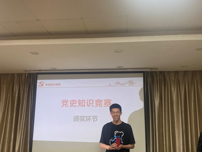 基于对党史的学习,加深支部内党员对党的历史、党的知识、党的理论和路线方针的认识,支部内组织了以问卷答题为主要形式的党史知识竞赛,并设置一二三等奖。经过紧张的答题环节,同学们都较好地完成了试卷,并由支部书记王宣程同志为获奖的党员同志颁发精美的浙大纪念礼品。
