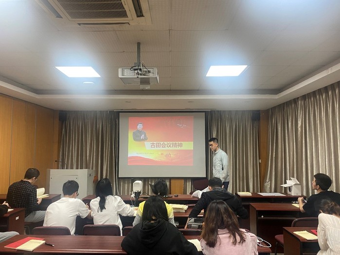毕嘉鹏同志以《论中国共产党历史》中的古田会议为切入点,为大家着重介绍了古田会议及其现实意义。古田会议是1929年在福建上杭县古田村召开的红四军党的第九次代表大会,是中国共产党历史上的一次重要会议,此次会议认真总结了南昌起义以来建军建党的经验,确立了人民军队建设的基本原则,重申了党对红军实行绝对领导,规定了红军的性质、宗旨和任务等事关党的事业兴衰成败的根本性问题。