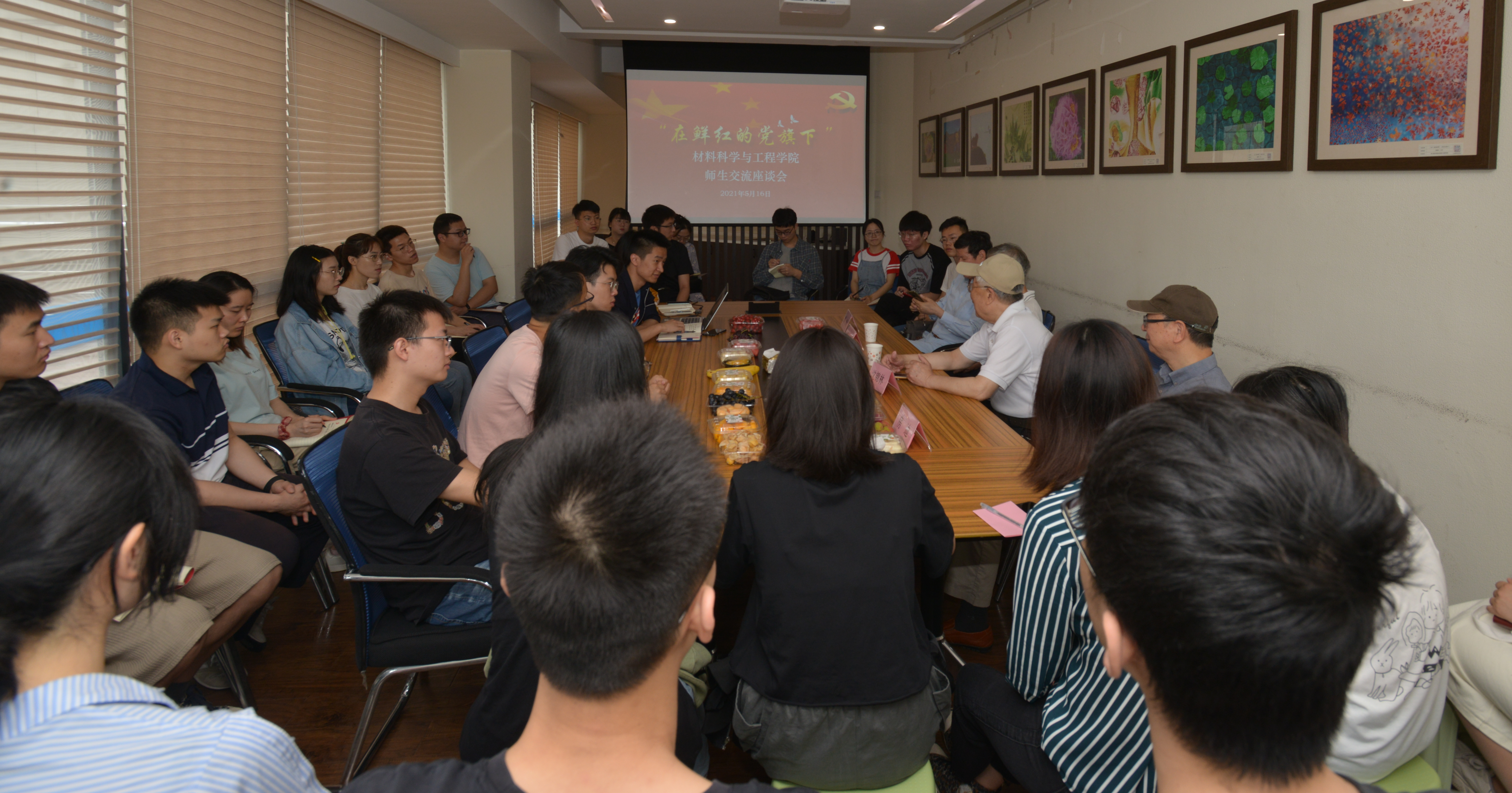 2021年是中国共产党百年华诞,材料学院积极响应号召,开展了党史学习教育系列活动。为了巩固提升学生预备党员的理论基础、党性修养、科学素质,促进师生党员间的沟通交流,材料学院于516日在曹光彪高科技大楼远望庐召开了“在鲜红的党旗下”师生交流座谈会。“在鲜红的党旗下”党建教育平台导师沈锦林、杨全、房迪、郦剑等四位退休党员老师应邀与三十余位学生预备党员开展座谈交流,旨在以个人经历与心得体会教育引导青年党员做到学史明理、学史增信、学史崇德、学史力行,学党史、悟思想、办实事、开新局,努力以优异成绩迎接建党一百周年。