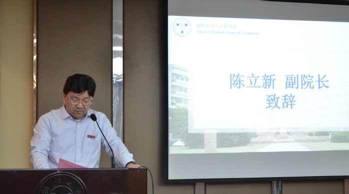 陈立新副院长在致辞中指出,材料学院认真落实学校政策制度和部署要求,紧紧围绕为党育人、为国育才,将创新创业教育作为落实立德树人根本任务的重要举措,积极探索基于创新的创业教育模式,推动创新创业教育融入人才培养全过程,着力增强同学们的创新精神、创业意识和创新创业能力;并分享了三点体会:个人发展要与社会发展紧密结合,团体和个人要有责任感、使命感和必要的危机感,创新创业需要勇气和毅力。