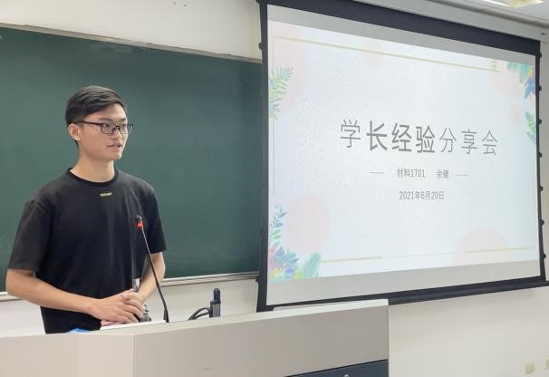 此后,2017级的两位优秀学长进行了经验分享。余健学长从学院保研资格条件、考研准备两个方面进行交流,他结合自身经历,建议同学们要及时关注和查询学院相关消息。蒋炜滔学长分享了自己大一到大四期间的学习生活、学生工作、社会实践活动等方面的心得体会,为同学们提供了许多宝贵的建议;同时,作为将要奔赴基层的一名选调生,他鼓励同学们积极投身服务基层事业,切身感受和参与祖国的发展建设。