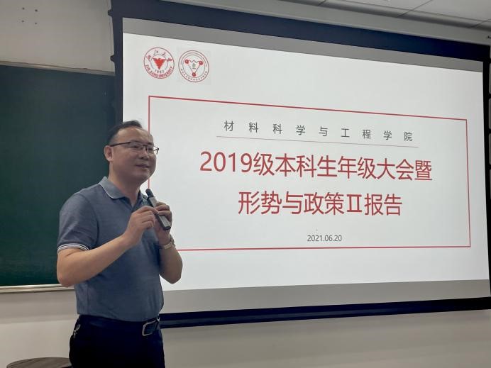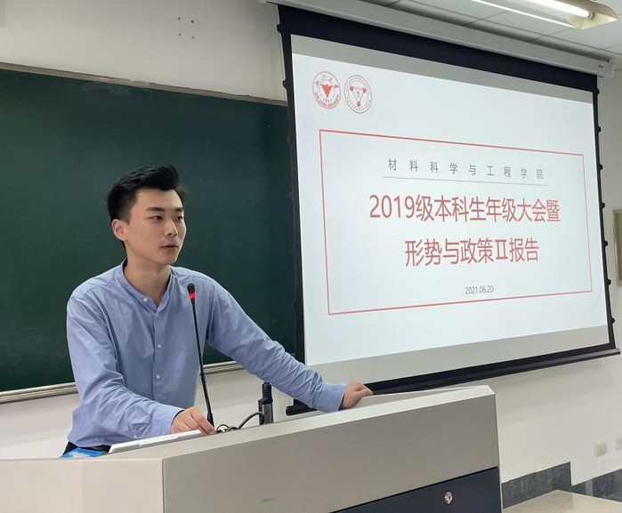 2021年6月20日下午,材料学院2019级本科生年级大会暨形势与政策Ⅱ报告会在紫金港校区西1-415召开,学院党委副书记张士良老师、班主任代表王宗荣老师、辅导员万士齐老师和陈文政老师出席本次大会。会议由万士齐老师主持,学院2019级全体学生参加。