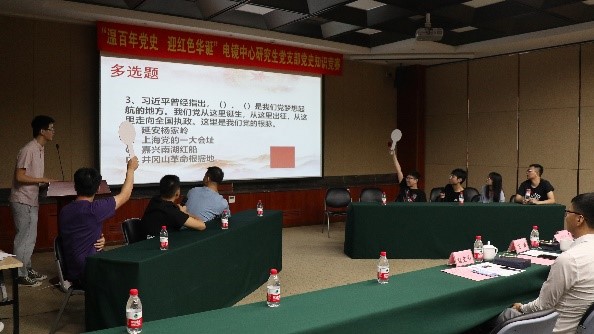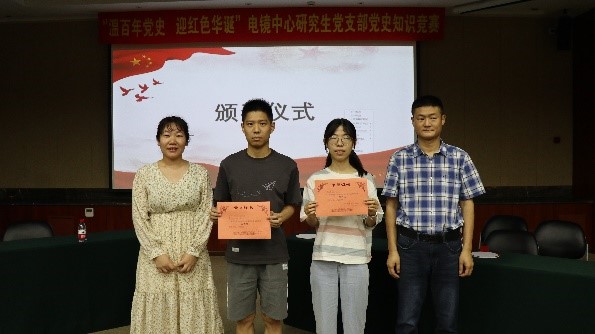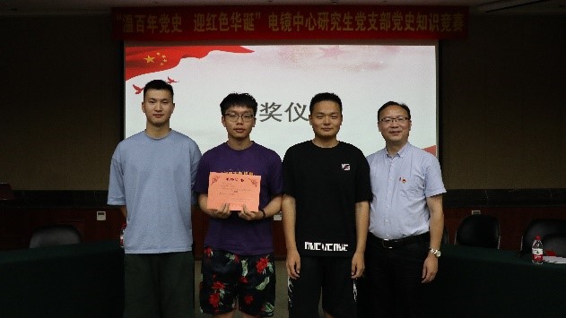 为巩固支部的党史学习成果,迎接党的百年红色华诞,切实引导支部党员学史明理、学史增信、学史崇德、学史励行,2021年6月29日上午9:00,电镜中心研究生研究生党支部,在邵逸夫科技馆212隆重举办“温百年党史,迎红色华诞”党史知识竞赛,学院党委副书记张士良,党委秘书王海萍,电镜中心主任王勇教授,电镜中心德育导师王江伟研究员,电镜中心班主任袁文涛老师出席本次会议并担任评委,支部全体党员参加了本次活动,本次比赛由支部副书记林宇铖主持。