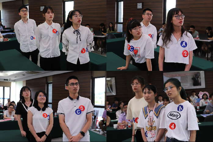 第二环节“激流勇进”,八组选手共同上台抢答,团队抢答成功后,可由队伍中任意一位同学给出回答,限时内答对得2分,答错扣1分。竞赛选手比抢答速度、比反应时间、比心理素质,各参赛队伍反应迅速、配合默契、沉着应对、各展风采,现场气氛紧张热烈,竞赛进入“白热化”。