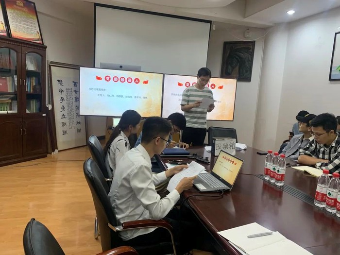 会议第一项由支部书记刘群获同志对过去一年支委的工作进行总结汇报,其中包括支部党课学习情况、发展党员情况、党日活动开展情况、优秀党员模范事迹、支部品牌活动组织情况与“无机三谈”微信公众号建设情况,并对工作中存在的一些问题和不足进行反思。