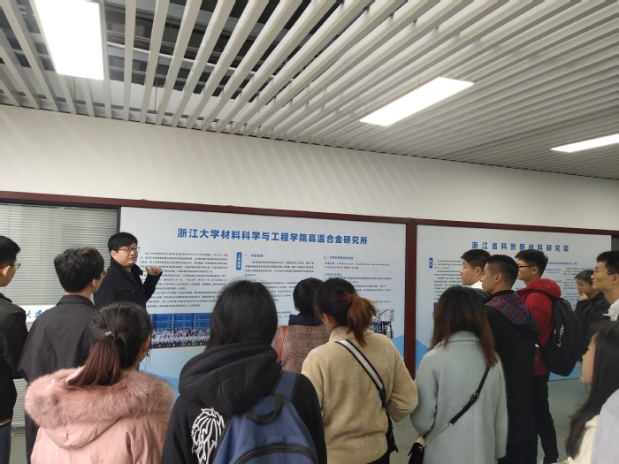 下午,一行人前往浙江大学材料学院高温合金所调研学习,走出书本课堂,到科研工作第一线体悟时代脉搏。材料学院魏晓副教授向大家简要介绍了实验室的发展定位、建设目标、研究队伍、科研项目及近期取得的一系列重要成果,并带领大家参观了解了实验室内主要的先进仪器设备。