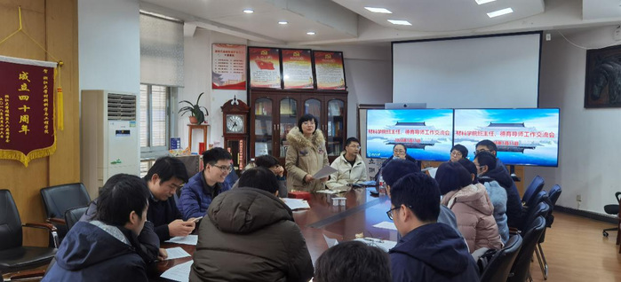 为全面落实全国高校思想政治工作会议和全国教育大会精神,切实加强班集体和班主任队伍建设,加强学院和德育导师、班主任之间的交流学习,1月11日中午,材料学院于曹光彪楼326会议室召开了德育导师、班主任工作交流会。会议由学院党委副书记王育萍老师主持,各研究所、班级德育导师和班主任参加。会议还特别邀请到了浙江大学就业指导与服务中心谢红梅教授进行分享。