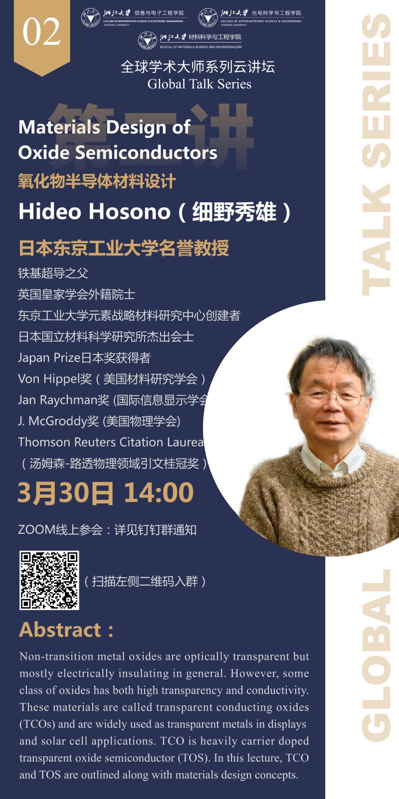 为了不让疫情阻碍学生国际交流的“脚步”,培养具有学科交叉潜质、国际化视野的人才,材料学院将联合光电学院、信电学院于2022年3月-5月推出全球学术大师云讲坛活动,特邀海外知名专家学者分享最新学术研究成果,旨在加强学生学术交流和科技创新意识,提高交叉学科素养。
