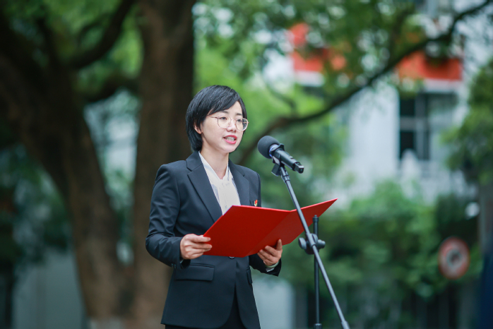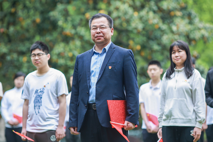 材料科学与工程学院老领导原系主任毛志远,材料学院院长朱铁军,学院党委书记王晓燕,副院长程逵,院长助理邓人仁,吴浩斌等教师代表以及学生党员、入党积极分子代表等共同参加升旗仪式。仪式由学院党委副书记王育萍主持。