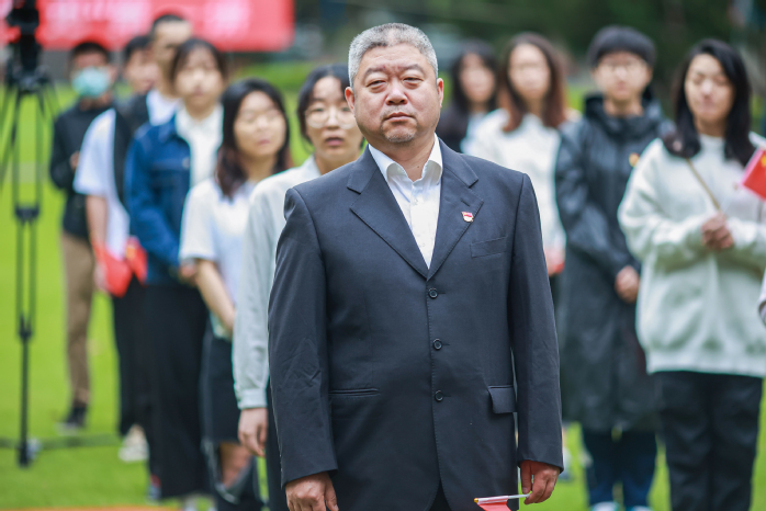 踏着晨曦,迎着凉爽的晨风,6时许,材料学院的师生们齐聚毛像草坪,怀揣热忱之心,等待着升旗仪式。