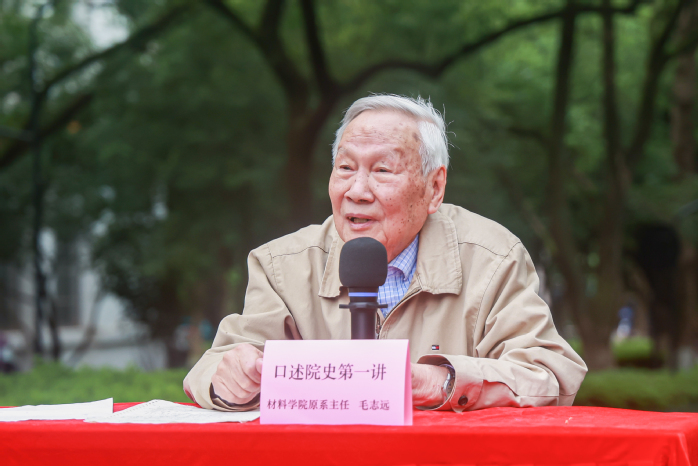 零星春雨淅淅沥沥地洒落在求是园内,92岁高龄的毛志远老师精神矍铄,神采奕奕地为我们展开了口述院史的第一讲。毛老师从1952年院系调整向我们娓娓道来,材料学科发展史宛如精彩的画卷呈现在我们面前。流水不腐,户枢不蠹,看似平静的日常教学、科研背后涌动着的是浙大材料人们追寻真理,不畏牺牲的求知热情与渴望,正应如此,材料学科得以厚积薄发、欣欣向荣。岁月如歌,未来可期,通过前辈们的言传身教,我们青年学子必将在新时代下始终保持艰苦奋斗的前进姿态,为实现中华民族伟大复兴的中国梦而不懈努力!