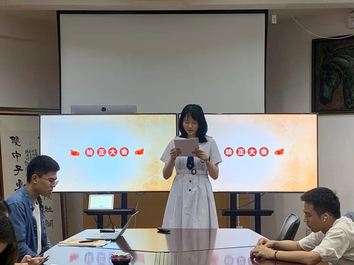 在宣读完转正申请书后,在会党员对刘哲同志预备期的表现进行了相应评价,充分肯定了她在预备期的工作态度与逐渐提高的党性修养,认为刘哲同志已经具备了成为合格共产党员的素质。