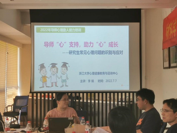 基于自由讨论环节各位德育导师和班主任提出的问题,浙江大学心理健康教育与咨询中心的李娟老师给大家做出了正确的解读,并以《导师“心”支持,助力“心”成长--研究生常见心理问题的识别与应对》为主题,从“什么是心理问题”、“心理问题的症状”、“面对心理问题应该怎么办”等方面进行了分享,李老师指出只有拉近和学生之间的距离,才能让学生放下焦虑与压力,直面当前困境,为他们指引正确的学习和生活方向。